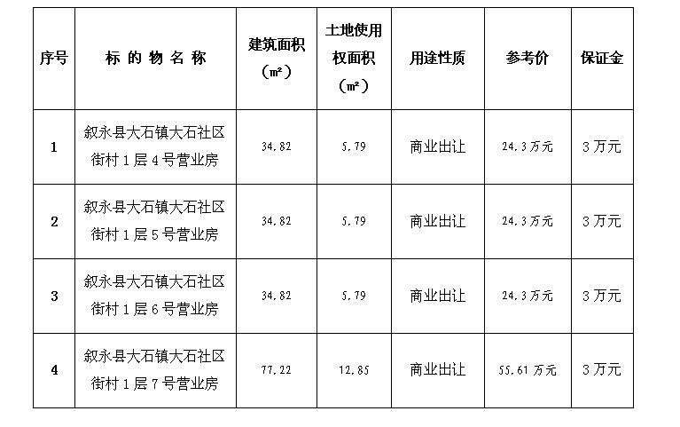 拍賣時間及地點:2018年8月17日上午10:00在敘永縣公共資交易中心開標室公開拍賣。